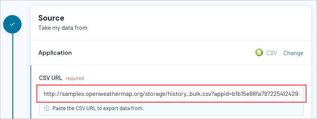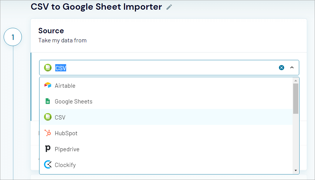 Here’s an example screenshot of selecting CSV data source in Coupler.io: