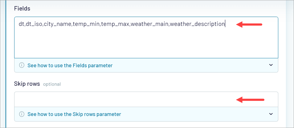 Optionally, you can specify which fields to import and even skip some rows if you’d like to: