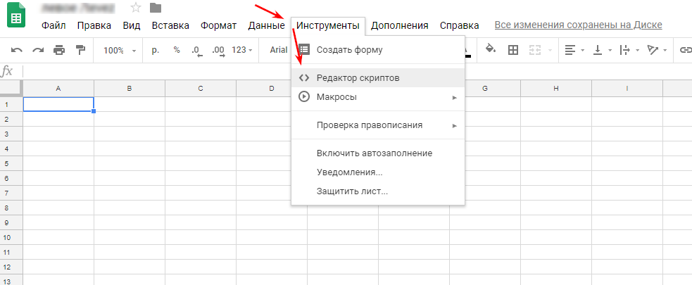 Теперь я постараюсь Вам его объяснить. Функция onOpen добавляет меню «Скрипты» к таблице при открытии оной. И выглядит это дело так: