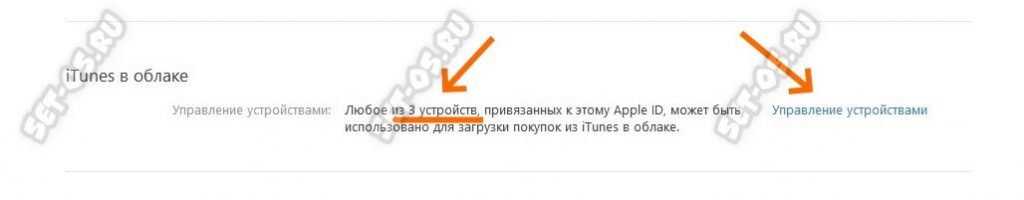3. В открывшемся окне найдите раздел «iTunes в облаке». Там будет указано сколько устройств привязано к Apple ID. Нажмите на ссылку «Управление устройствами.