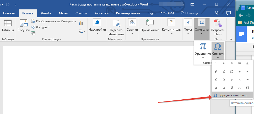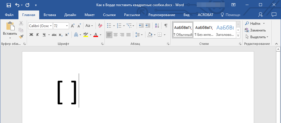 В Microsoft Word есть большой набор встроенных символов, среди которых можно легко отыскать и квадратные скобки.