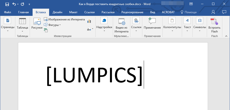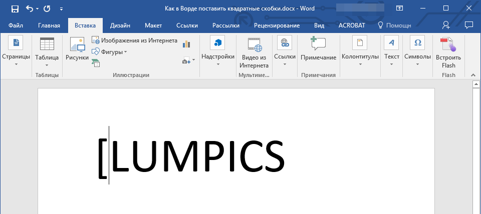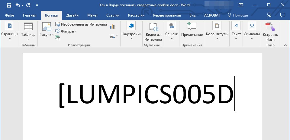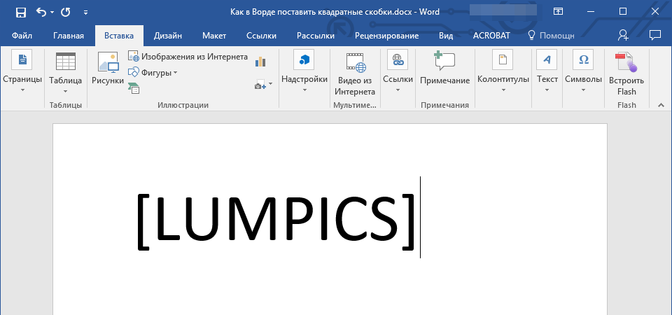 Квадратные скобки в Ворде