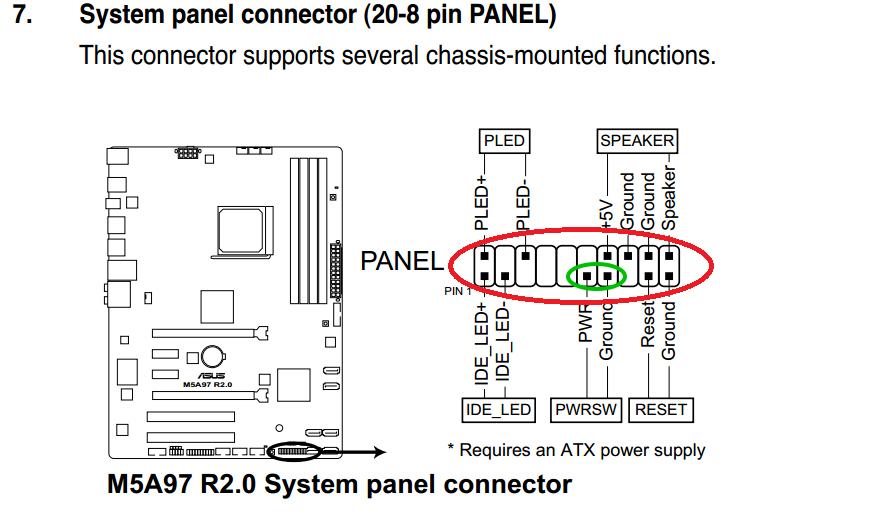 Нужно отключить проводок «Power SW» и замкнуть контакты отвёрткой.