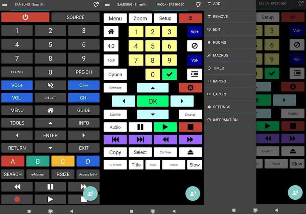 ПО предназначено для телефонов с инфракрасным портом, через который можно управлять любым телевизором, а не только Smart TV. Его преимущество – взаимодействие со многими старыми моделями смартфонов, практичный виджет и работающая кнопка включения/выключения ТВ, которая не работает во многих бесплатных программах.