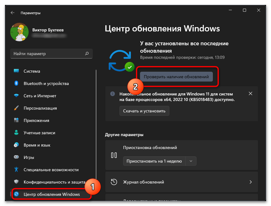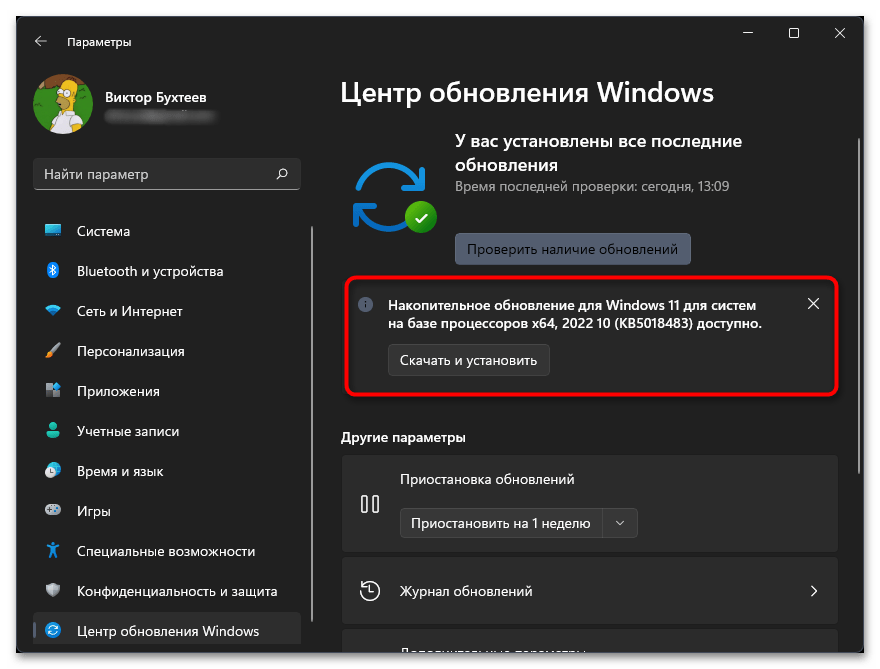 Далее предлагаем остановиться на теме системных обновлений и проверить, есть ли что-то из не установленного в вашей сборке Windows 11. Дело в том, что последнее время Майкрософт активно выпускает различные обновления безопасности и исправления, которые автоматически решают частые проблемы пользователей. Инсталляция апдейтов может помочь вам исправить работу «Безопасности Windows», поэтому попробуйте проверить наличие обновлений.