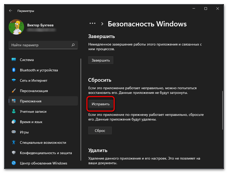 То окно, в которое вы хотите перейти для работы с брандмауэром или антивирусом, является отдельным стандартным приложением Windows 11, отображающимся в списке установленных программ. Через этот список можно переключиться в раздел для исправления или сброса приложения, что поможет исправить его сбои. Давайте детально рассмотрим, как осуществляется переход к необходимым опциям и их запуск.