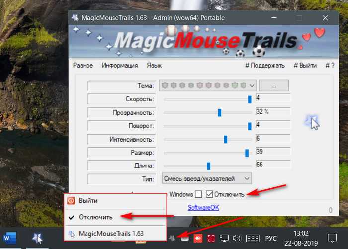 MagicMouseTrails – это бесплатная утилита упомянутого выше разработчика SoftwareOK, и она реализует эффект звёздного следа за курсором. Это лёгкий ненавязчивый эффект, разряжено и игриво следующий за курсором, тонко реагирующий на все его движения, подчиняющийся своей определённой физике.