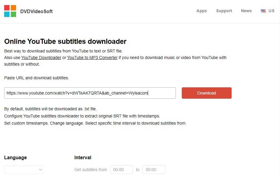 Инструмент для извлечения субтитров Youtube: DVDVideoSoft можно бесплатно использовать онлайн