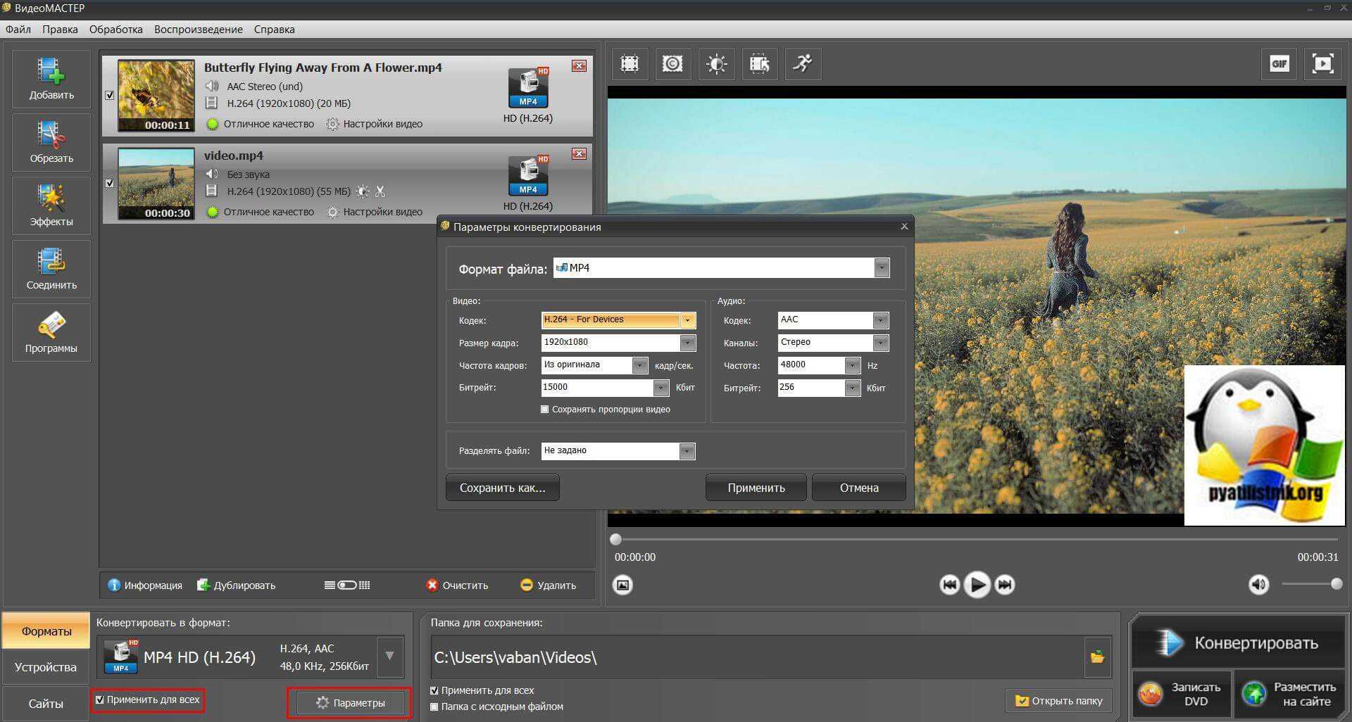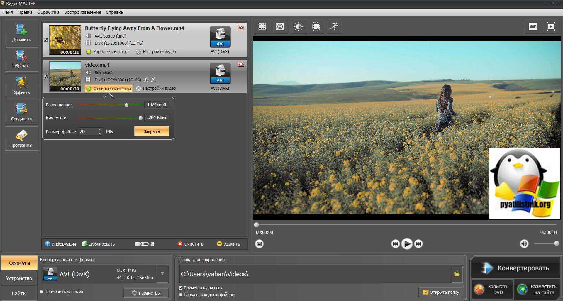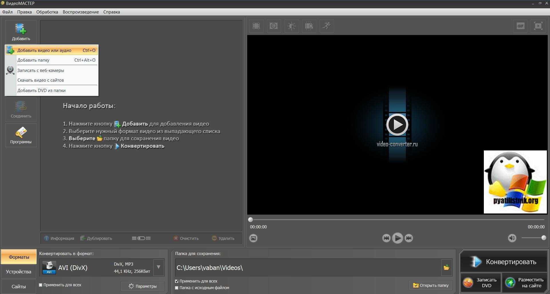 Это приложение имеет удобный русскоязычный интерфейс и предлагает множество готовых предустановок для мобильных устройств и сайтов. Другие плюсы программы ВидеоМАСТЕР: