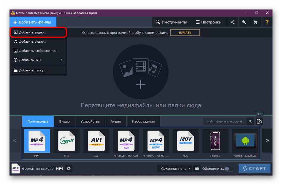 Запустить программу и в главном меню нажать на «Добавить видео».