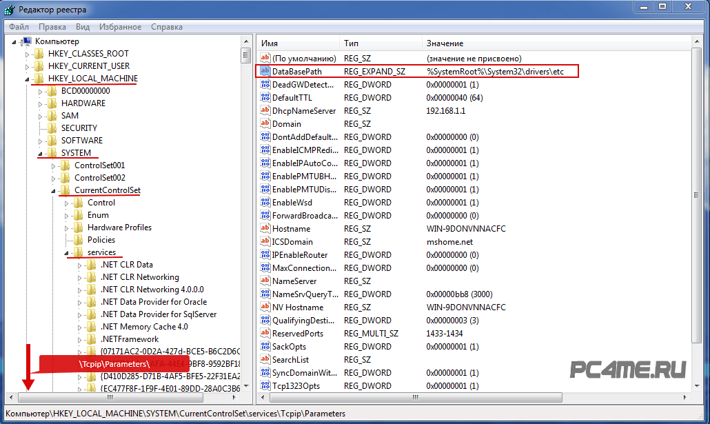 Для В папке HKEY_LOCAL_MACHINE\SYSTEM\CurrentControlSet\services\Tcpip\Parameters