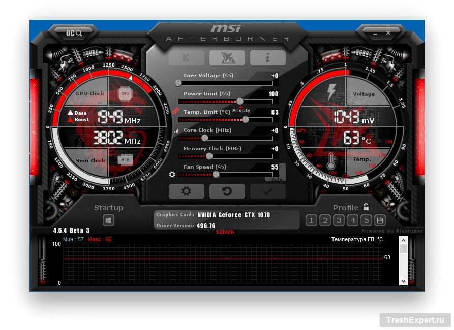 MSI Afterburner – еще одна программа для разгона видеокарты AMD, которая позволит осуществить процесс увеличения производительности более точнее, используя дополнительные параметры.