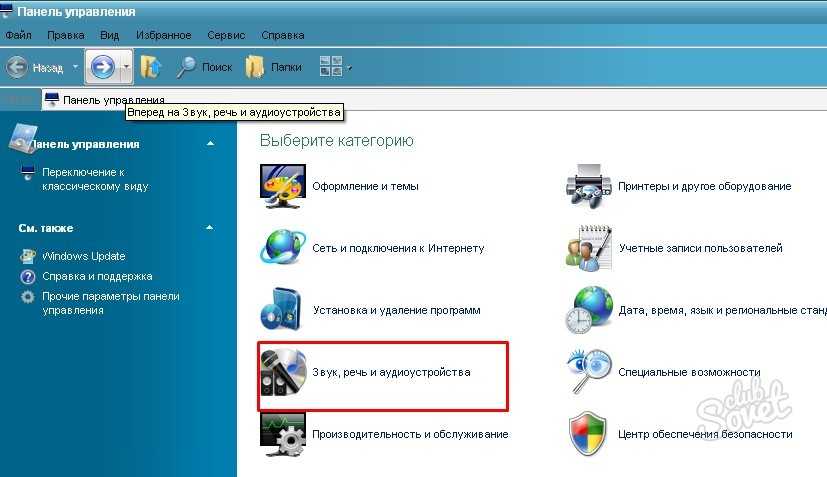 В открытом окне панели управления нажимаем <Звуки, речь и аудиоустройства>.