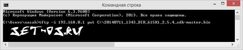 В моем примере файл с микропрограммой называется 20140711_1343_DIR_615K1_2.5.4_sdk-master.bin и лежит в корне диска C:\. Команда будет выглядеть так: