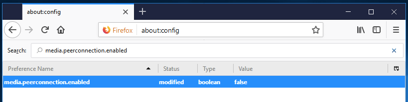 Чтобы отключить параметр WebRTC в Firefox, введите «media.peerconnection.enabled» в строку поиска, а затем дважды щелкните по найденной опции, чтобы изменить ее значение на «False».