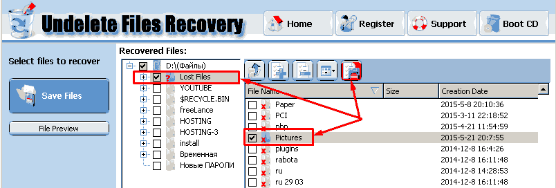 Программа просканирует HDD и выдаст список папок с файлами. Принцип навигации такой же, как в проводнике Windows: слева папки, справа их содержимое (вложенные папки или файлы).