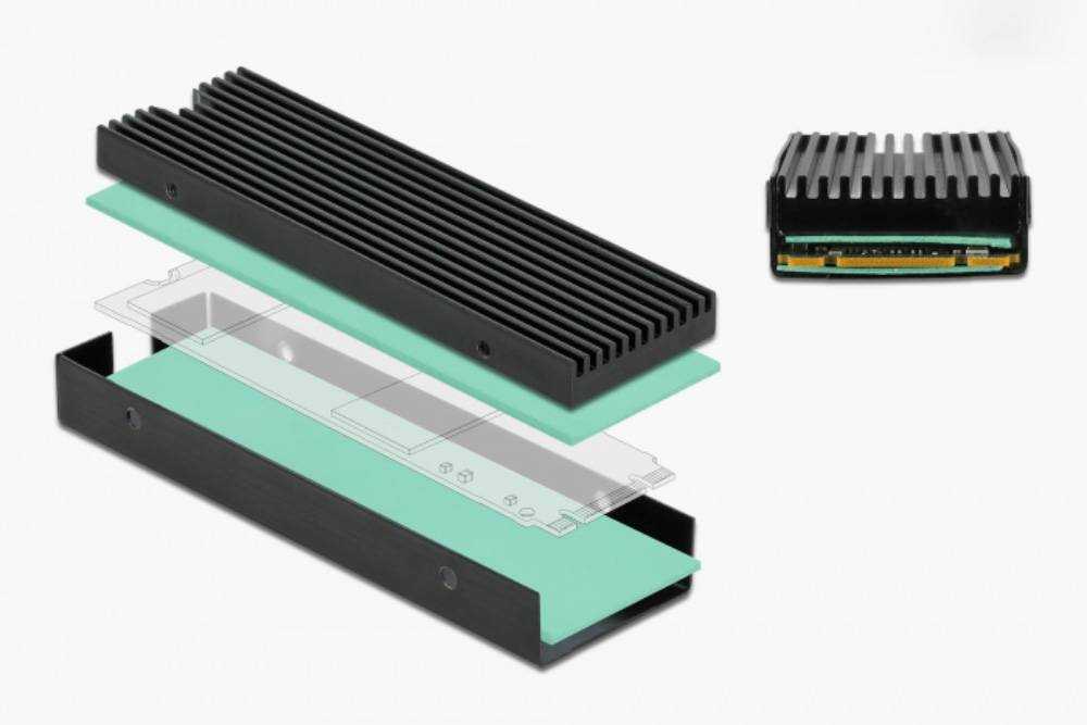 Радиатор — это медная или алюминиевая панель, которая устанавливается сверху плашки накопителя и отводит тепло от него внутрь корпуса. Иногда панели комплектуются кулером