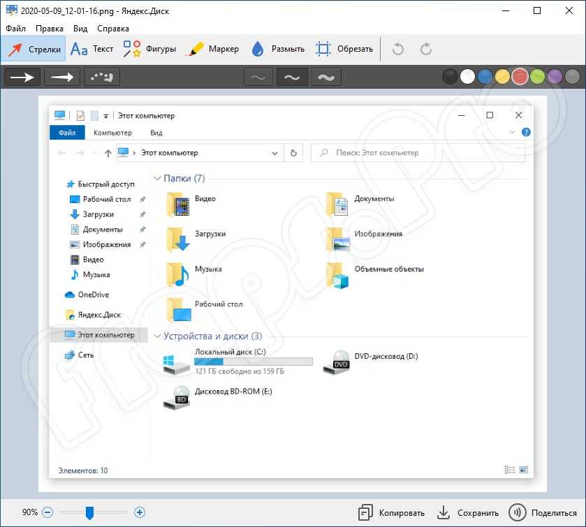Рис. 4. Скриншот в редакторе Яндекс.Диска можно копировать, сохранить, поделиться