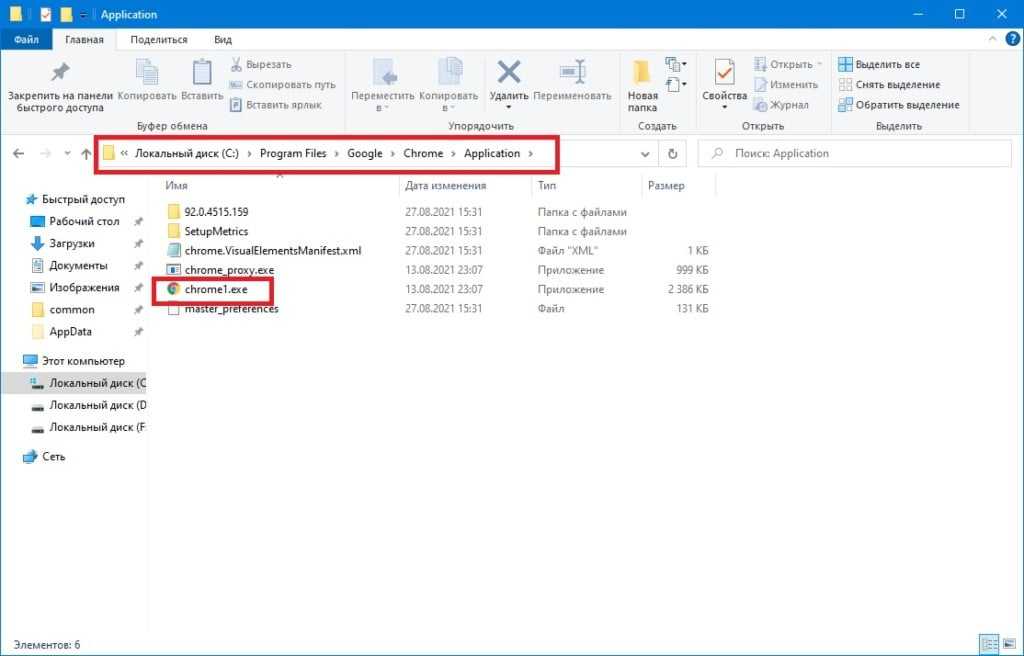 Откройте один из этих путей в своем Проводник затем переименуйте файл «chrome.exe» в «chrome1.exe«: Окно выдачи