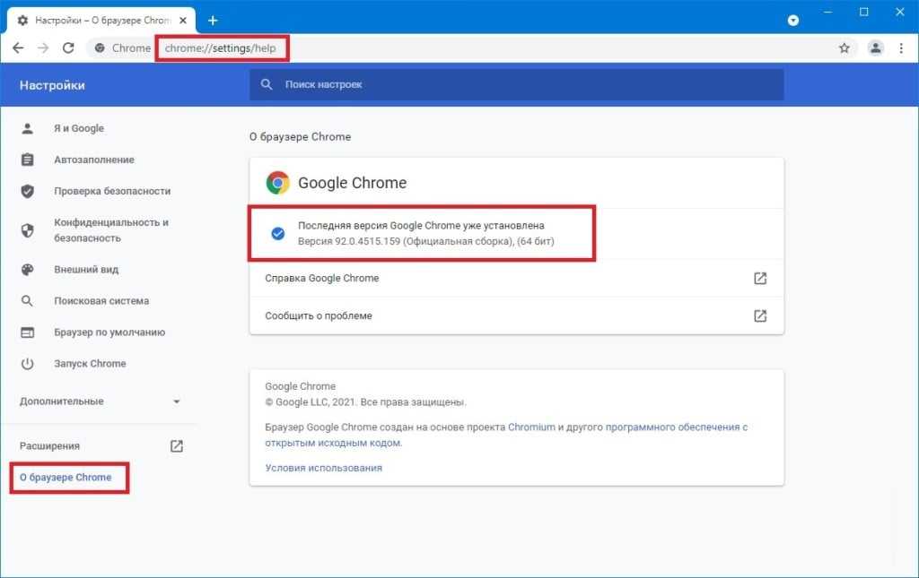 - Перейдите через панель слева во вкладку «О браузере Chrome».