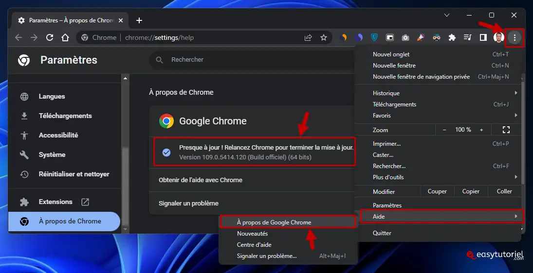 Кроме того, вы можете проверить наличие обновлений в самом Chrome. Откройте настройки chrome: // в адресной строке и нажмите «О Chrome», пусть он проверит наличие обновлений и загрузит их для вас.
