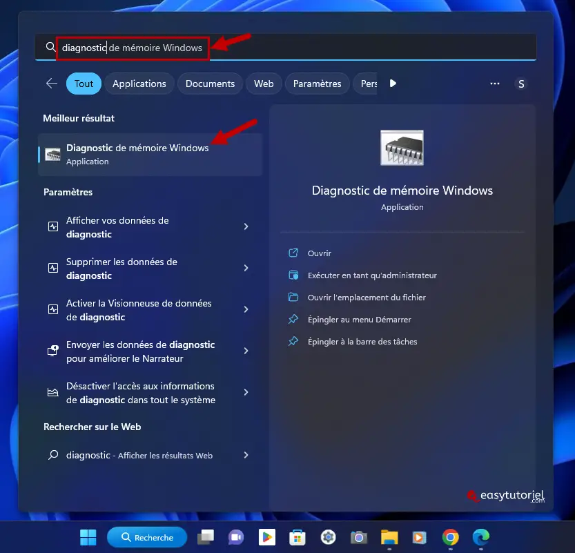 вы можете сканирование оперативной памяти с вашего компьютера с помощью «Диагностика памяти Windows«, который вы можете запустить при следующем запуске через меню «Пуск».