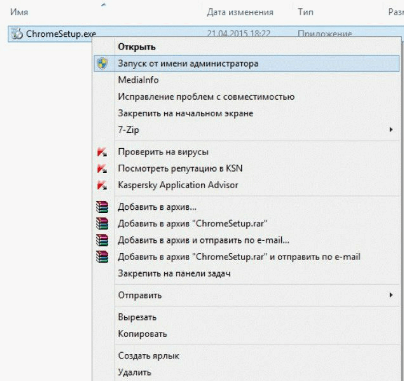- Нажмите ПКМ на файл «Chrome.exe» и выберите «Переименовать».