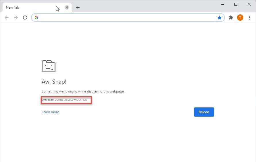 Код ошибки Status access violation может возникнуть на веб-ресурсах, на которых возникла проблема с загрузкой и отображением данных. Есть вероятность, что ошибка уже была исправлена разработчиками, поэтому попробуйте заново установить браузер Google Chrome на свой компьютер: