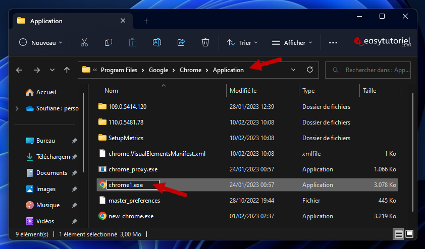 - Измените имя файла с «Chrome.exe» на «Chrome1.exe».