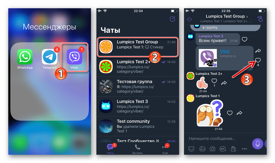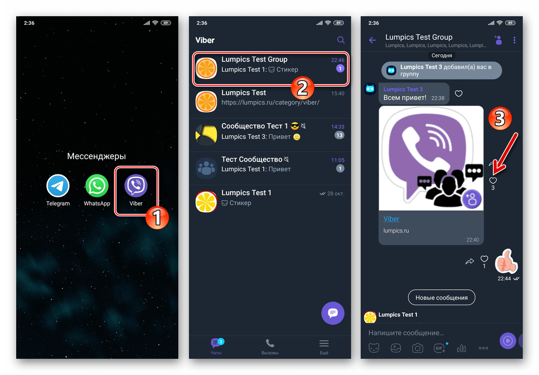 Сам по себе доступ к экрану со списком лайкнувших в Вайбере отправленное собственноручно или «чужое» послание может быть получен буквально тремя тапами по экрану мобильного Android/iOS-девайса или несколькими кликами мыши в случае с десктопом/ноутбуком на Windows. Однако учтите, что рассматриваемая далее возможность доступна только в «обычных» группах Viber, где разрешён доступ участников к данным (идентификатору в мессенджере) друг друга.