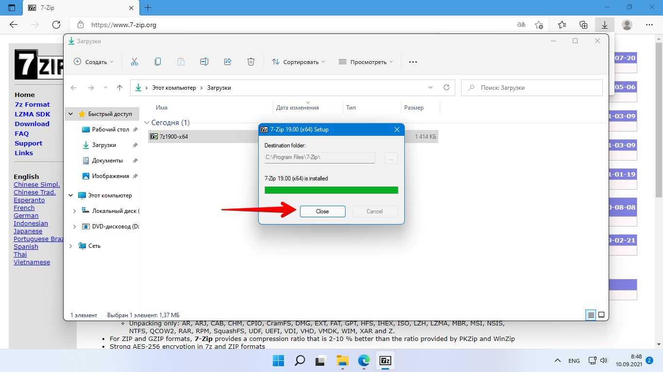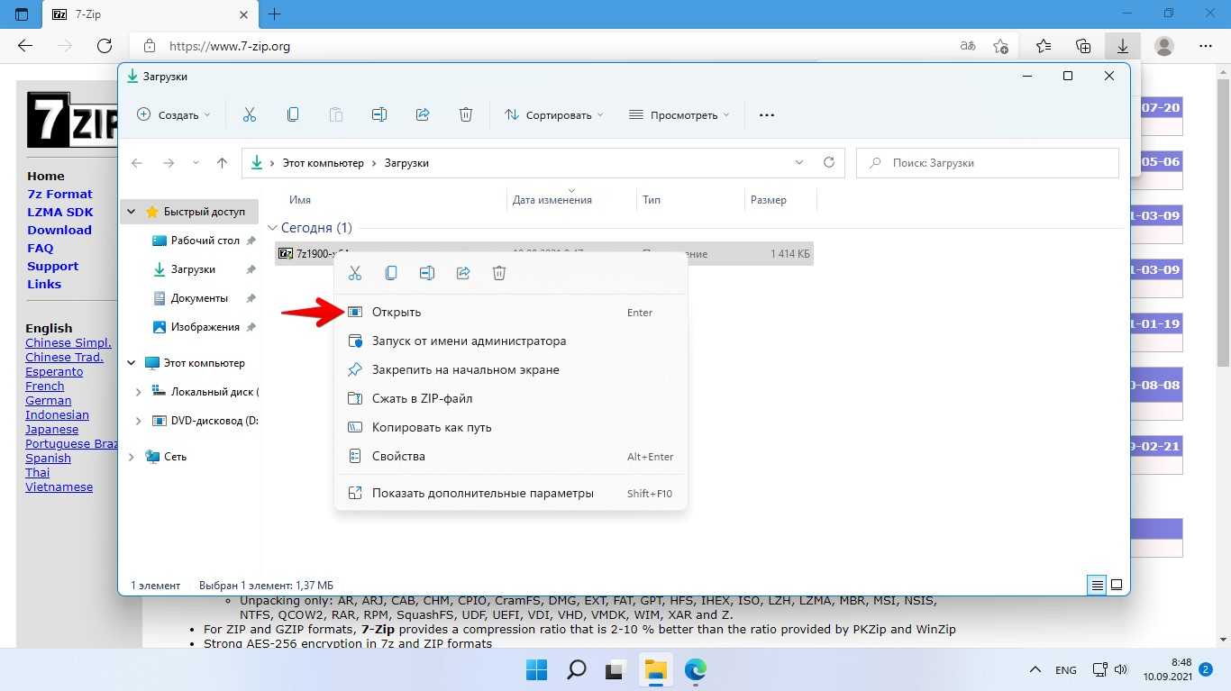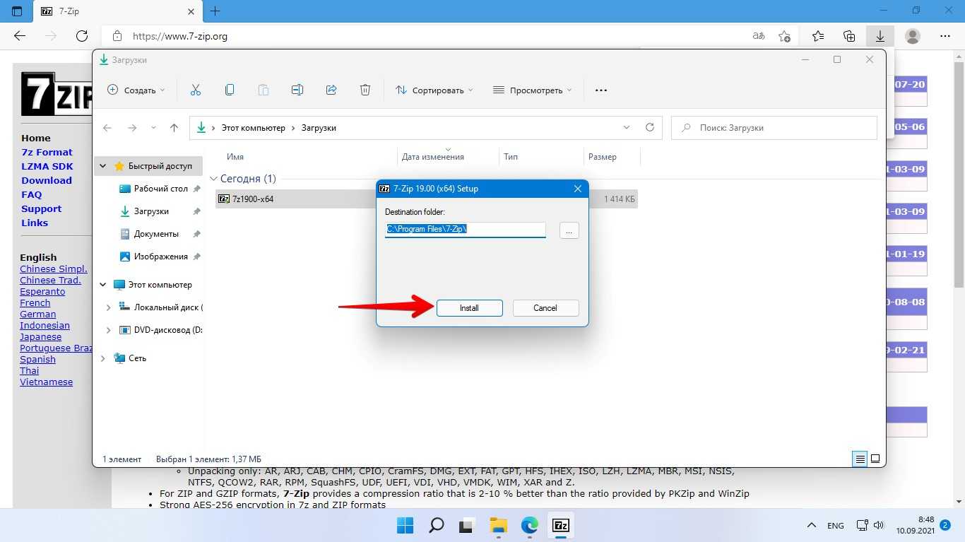 Если вы еще не устанавливали 7-zip в Windows, выполните следующие шаги для того, чтобы загрузить и установить 7-zip.