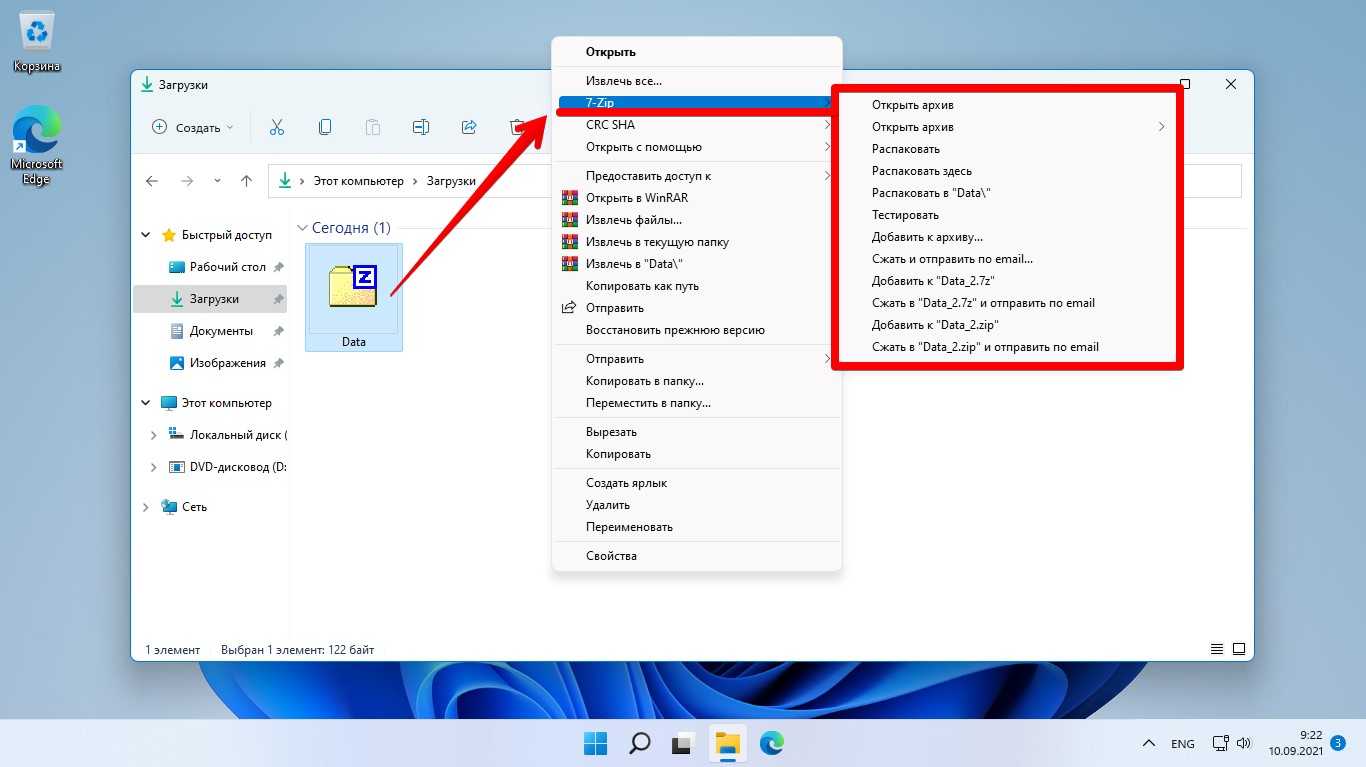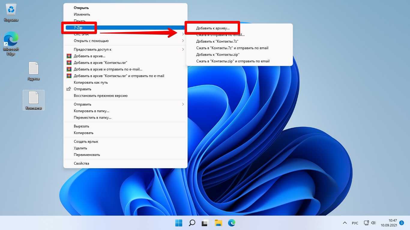 Как сжимать файлы с помощью 7-zip в Windows 11