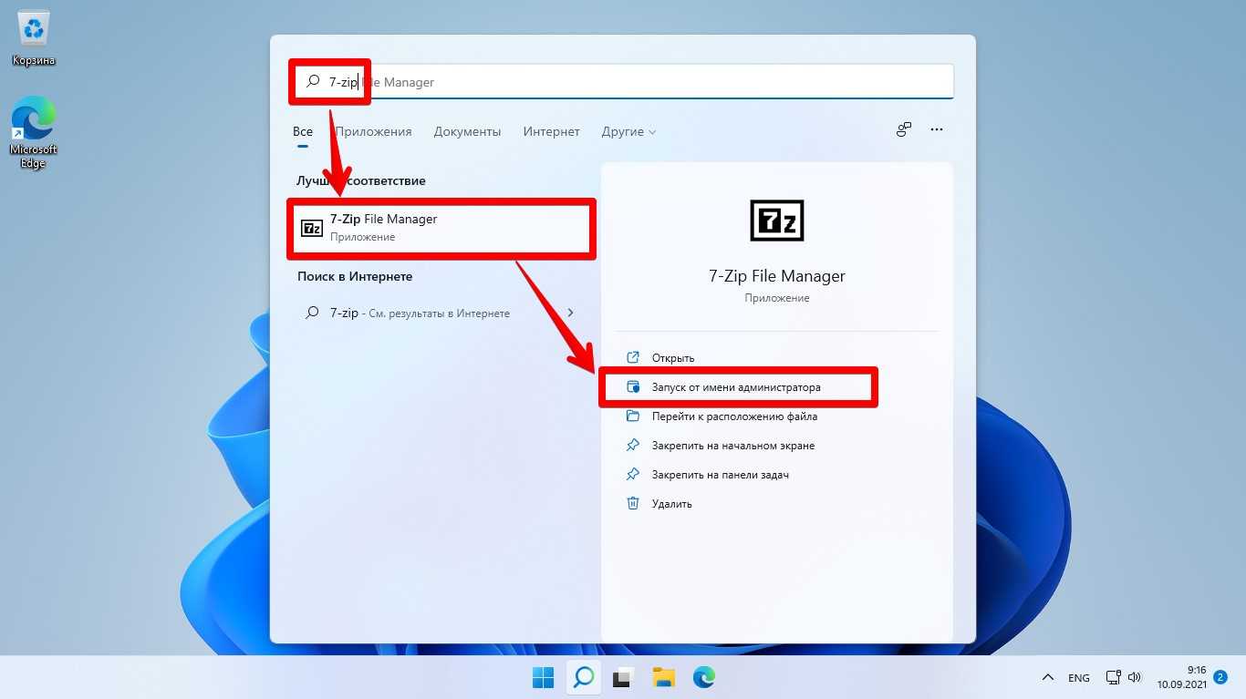 Теперь архиватор 7-zip установлен и найти его можно во всех приложениях через меню «Пуск».