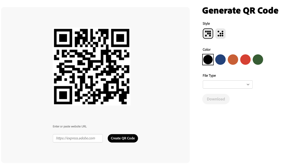 Adobe Express позволяет бесплатно создать QR-код, перенаправляющий на веб-сайт. Вы можете выбрать как будет выглядеть ваш код: определиться с цветом и формой изображения.