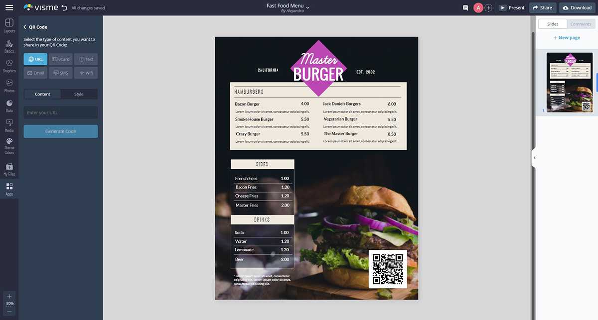 В первую очередь это Visme. Особенность Visme в том, что это больше, чем просто генератор QR-кода. Вы будете удивлены тем, сколько всего можно создать в редакторе (с QR-кодами и без них!).