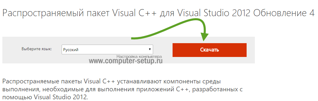 Скачать msvcp110.dll с пакетом Microsoft Visual C ++ 2012