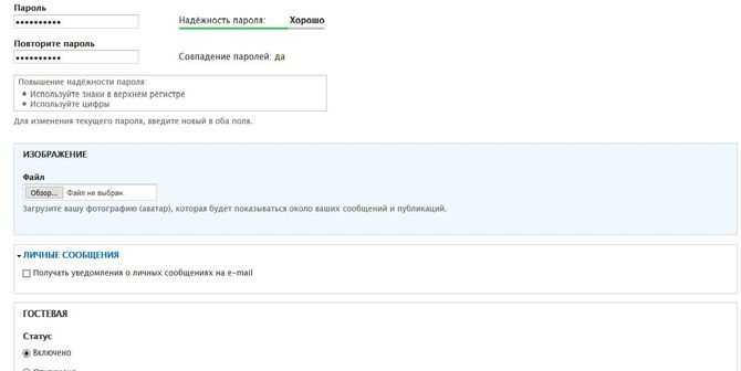 Здесь пользователь указывает пароль, настраивает функцию отправки уведомлений на электронную почту. Также предусмотрена возможность загрузить фотографию, поприветствовать коллег и т.п.