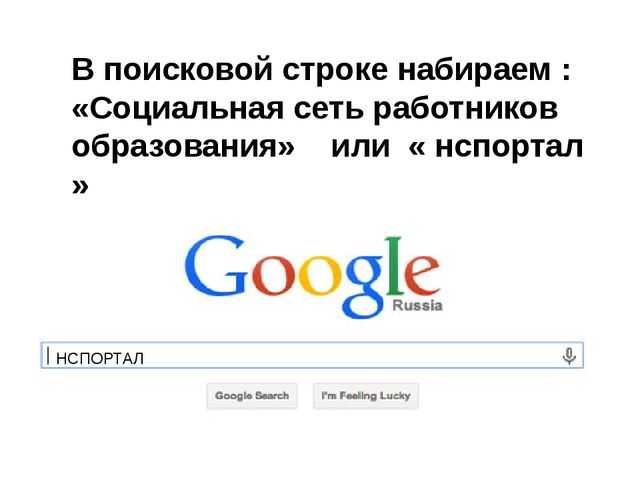 В поисковой строке набираем : «Социальная сеть работников образования» или « нспортал » НСПОРТАЛ