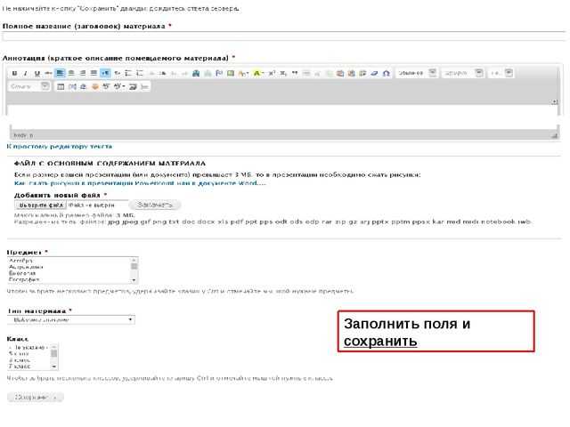 Заполнить поля и сохранить