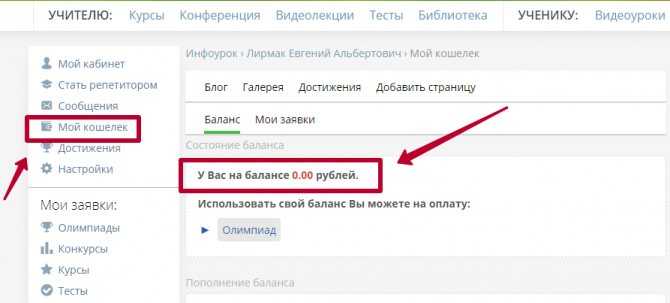 Кошелек и служба поддержки портала Инфоурок