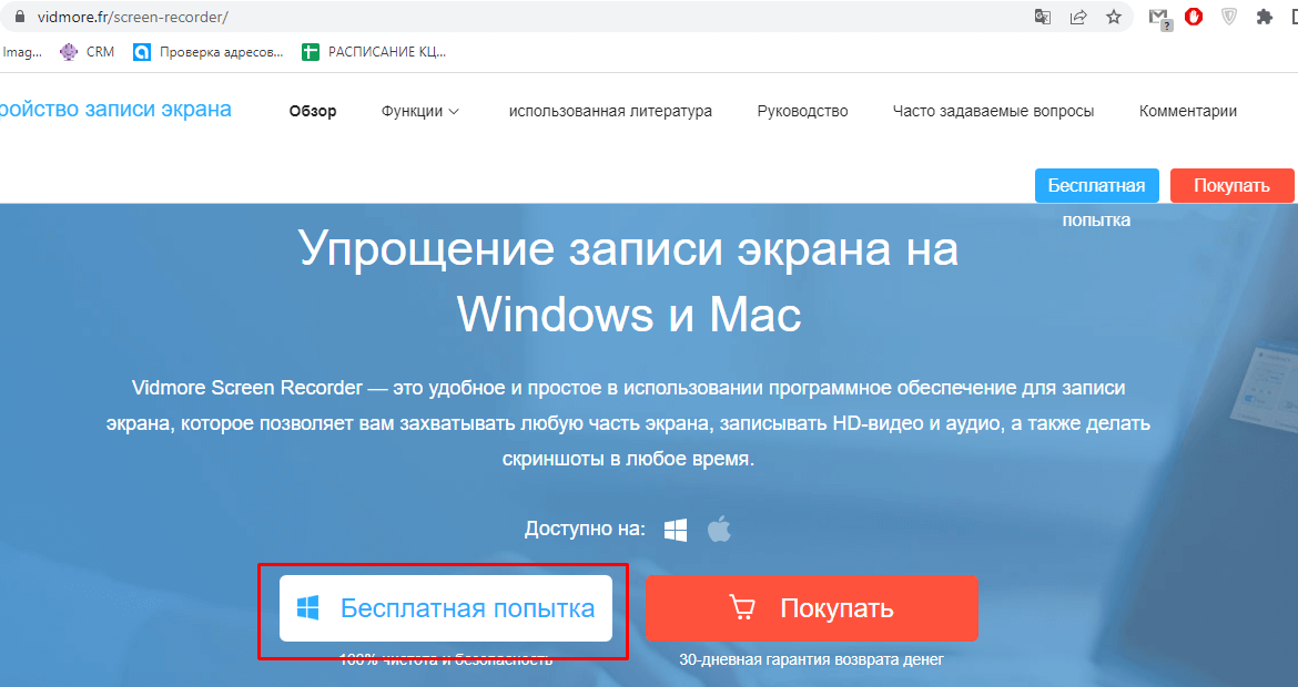 Если черный экран продолжает всплывать при записи видео игры, рекомендуется воспользоваться альтернативным ПО со схожими функциями. Таковыми является Vidmore Screen Recorder, скачать который можно бесплатно для Windows c официального сайта. Программа имеет доступный интерфейс со стандартным набором функций.