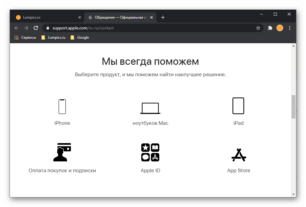 Обратиться в службу поддержки Apple