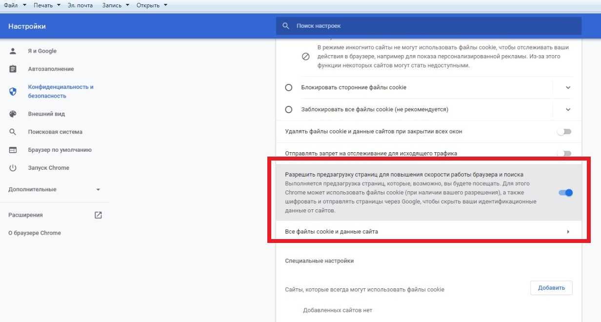 2] Отключить предварительную выборку(Disable Prefetch) в Google Chrome