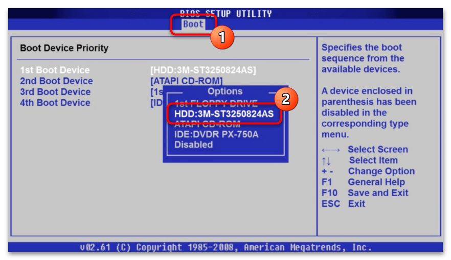 - Выставить главным устройством загрузки «HDD». Делается это в меню «Boot Priority».