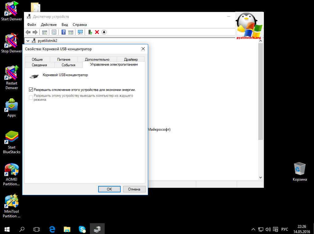 Отключение энергосбережения USB-устройств