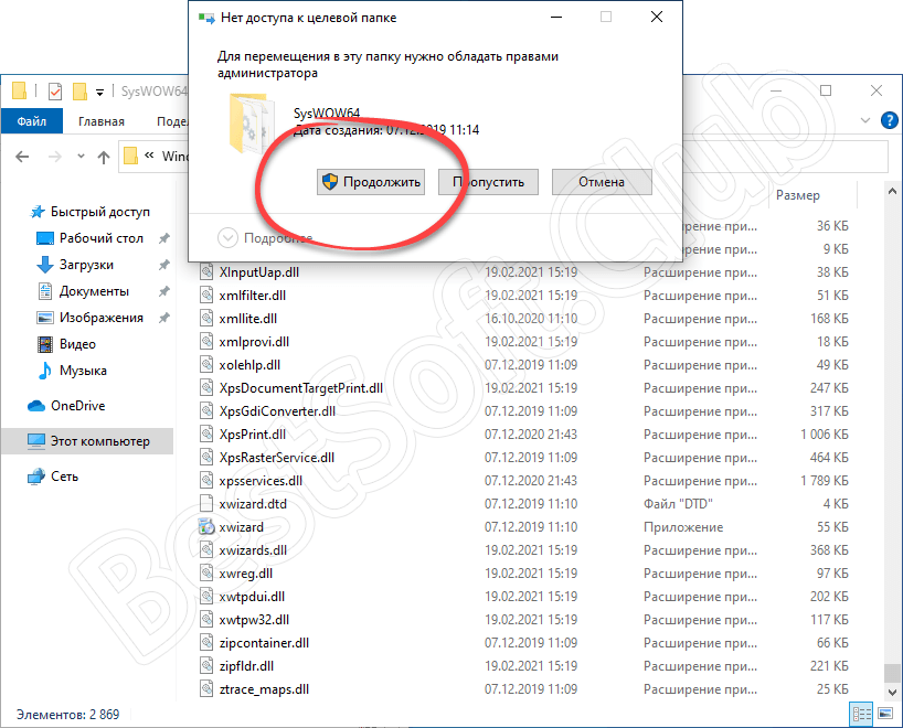 - Файл 64 бит помещаем в папку: C:Windows SysWOW64;