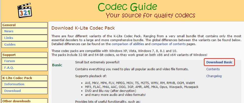 Загрузить K-Lite Codec Pack вы сможете по этой ссылке . Вам остается лишь установить пакет кодеков на компьютер и перезагрузить систему.