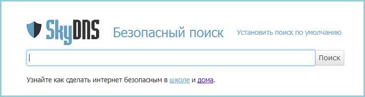 Заходим на страницу безопасного поиска poisk.skydns.ru и нажимаем на ссылку «Установить поиск по умолчанию». Там есть инструкция для всех популярных браузеров.