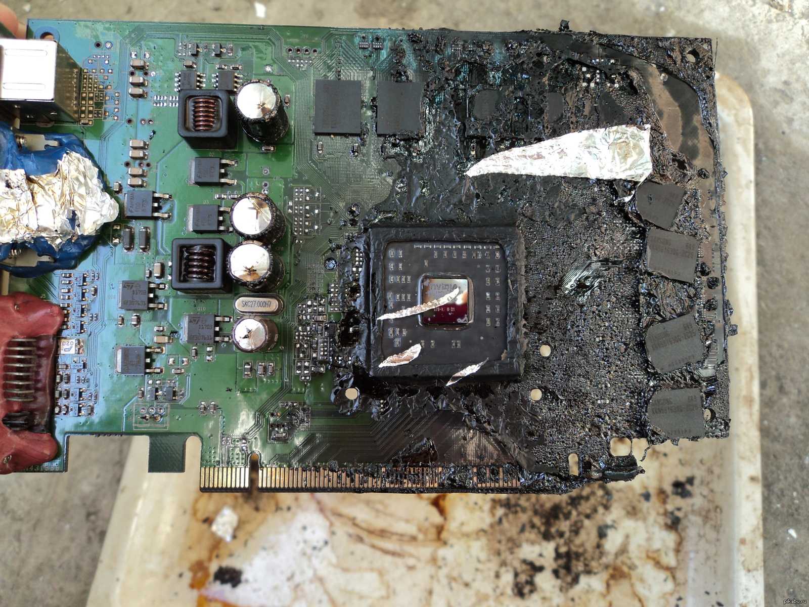 Прогрев заключается в том, что нужно в домашних условиях либо паяльной лампой, либо феном, либо утюгом нагреть GPU для того, чтобы восстановить контакт чипа с платой. Для этого нужно разобрать видеокарту и прогревать графический чип круговыми движениями в течении определенного времени. Данная процедура способствует тому, что BGA-шары между чипом и платой начнут плавиться, вследствие чего восстановится их соединение. Лучше избежать данный метод, ведь даже если работу будет делать профессионал – шанс того, что GPU снова заработает ровняется 60%.