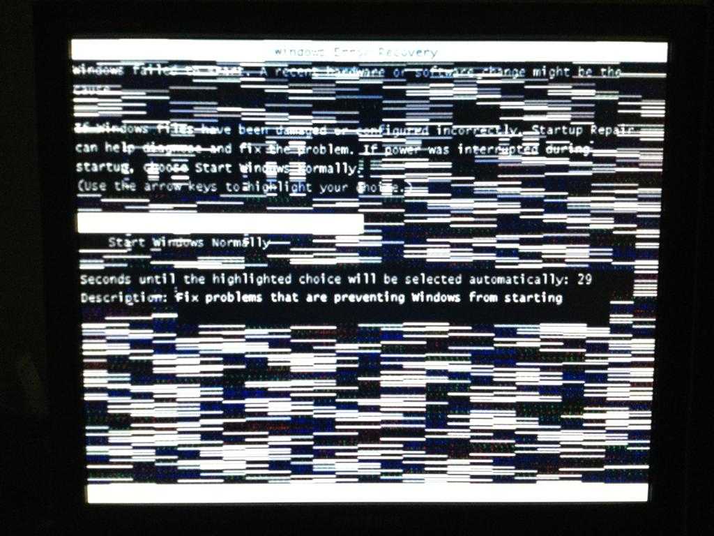 - На мониторе ноутбука появились различного рода полосы, искажения изображения в разной цветовой палитре, множество лишних символов и т.д.